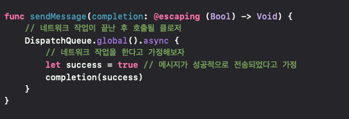 클로저를 사용해서 메시지가 성공적으로 전송되었는지에 대해서 확인할 수가 있어