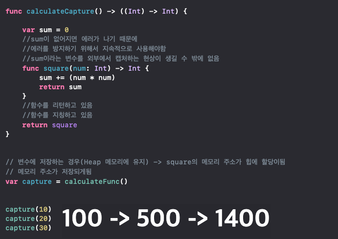 calculateCapture 함수를 호출하여 클로저 변수를 capture에 저장하게됩니다