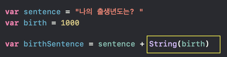 노란색 부분이 birth는 원래 Int 형인데 String으로 형변환을 한것을 알 수 있습니다