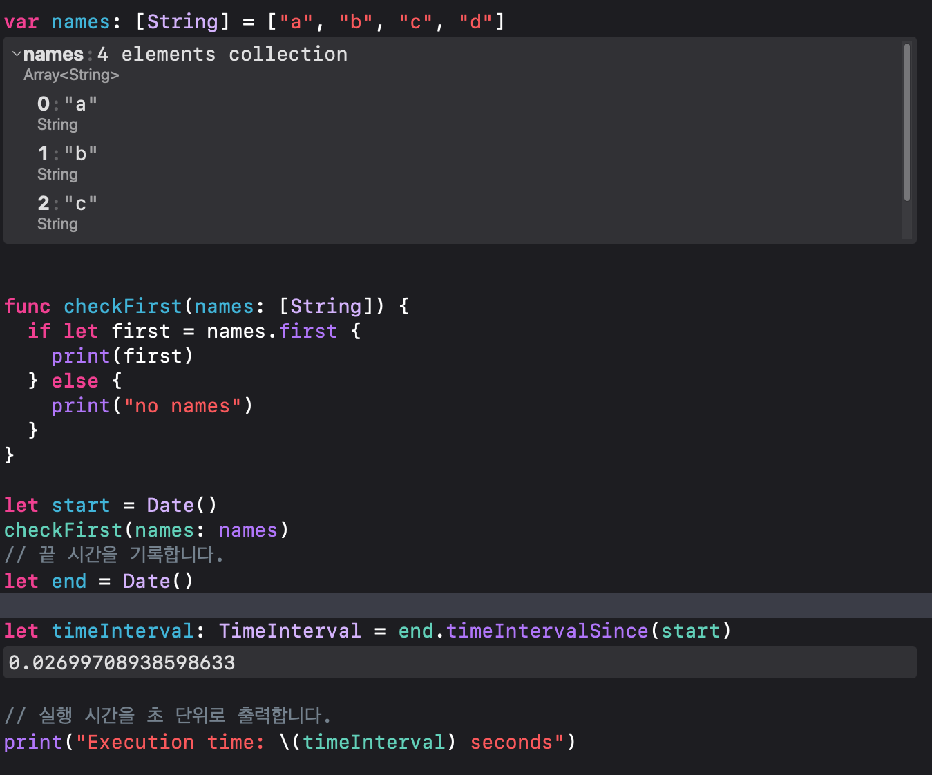 if value == minValue { //array 요소에 min값과 동일하면 값을 출력