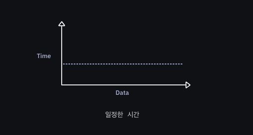 입력 데이터가 아무리 증가하더라도 알고리즘에 소요되는 시간은 변하지 않는것을 알 수 있습니다