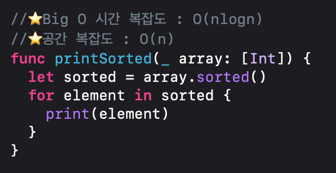 printSorted(_ array:) 공간 복잡도는 O(n)입니다