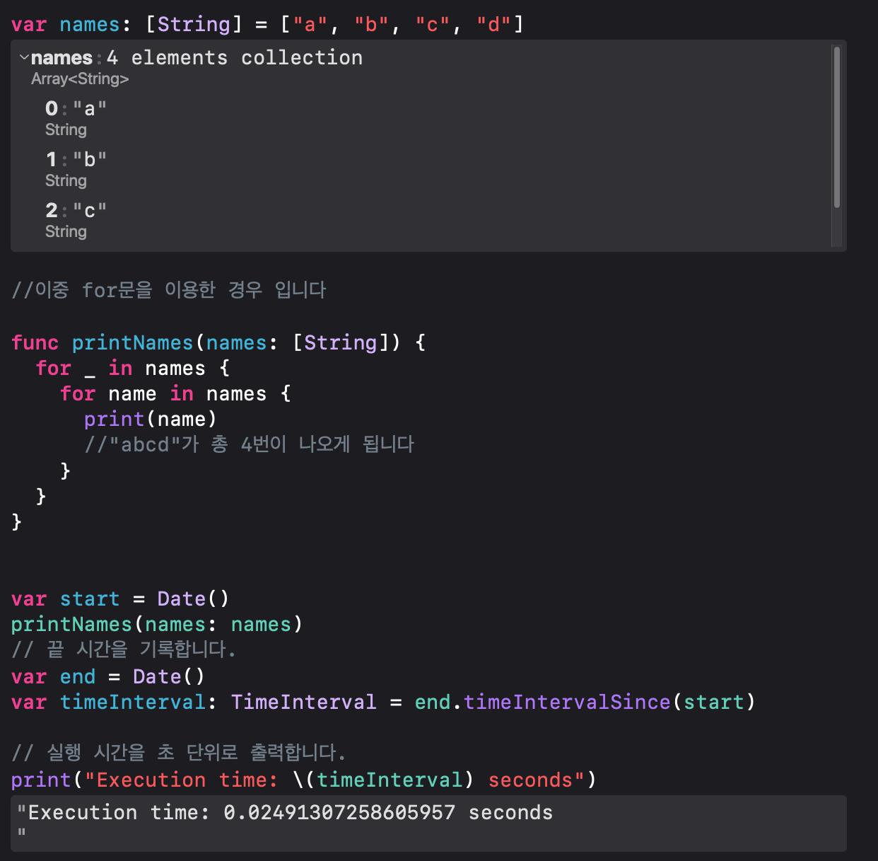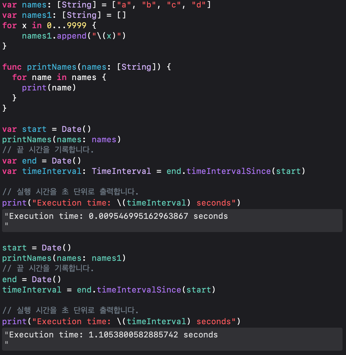 names1 배열을 도는데 걸리는 시간