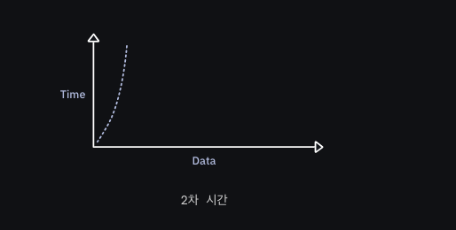 n의 제곱이라고 하는 이 시간 복잡도는 입력 크기의 제곱에 비례하여 시간이 걸립니다