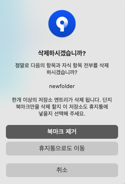 삭제 유무 팝업에서 원하는 항목을 선택해서 진행하면 됩니다