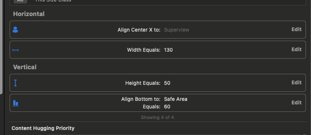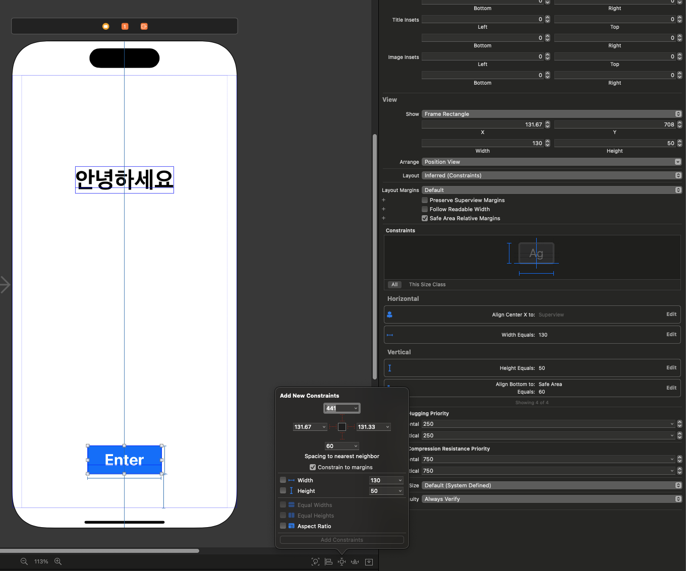 Add New Constraints는 객체에서 처음으로 위치를 잡을 때 사용하지만