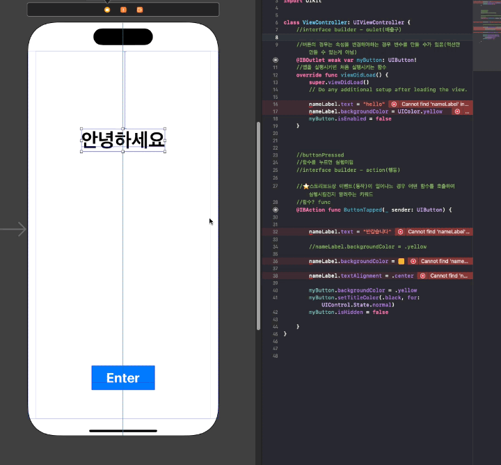 스토리보드와 코드를 연결하는 방법에 대해서 듣고 정리하였습니다 :0