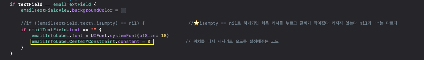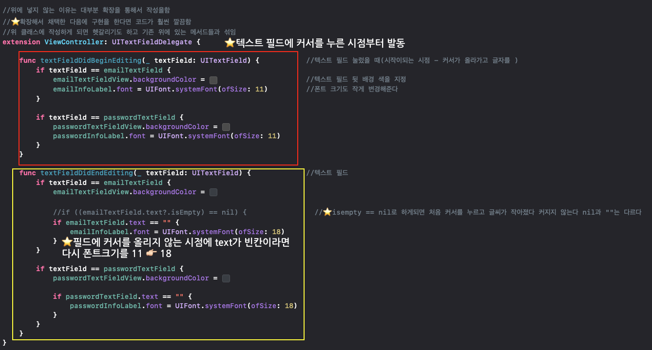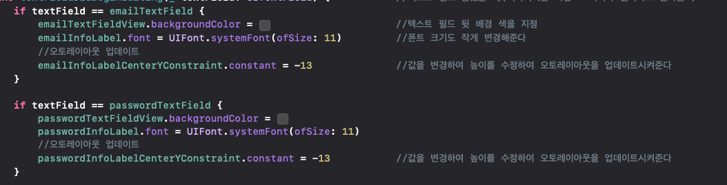 로그인 화면에 Info(설명) 문구가 작아지게 만들기 위해 UITextFieldDelegate 델리게이트 패턴 만들기