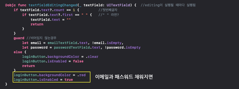 텍스트 필드 둘 다 채워졌을 때 로그인 버튼 색상 변경
