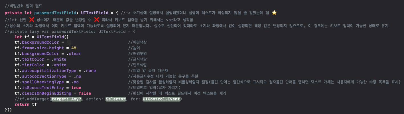 키패트 입력 할 때 UITextField를 let으로 선언한다면?