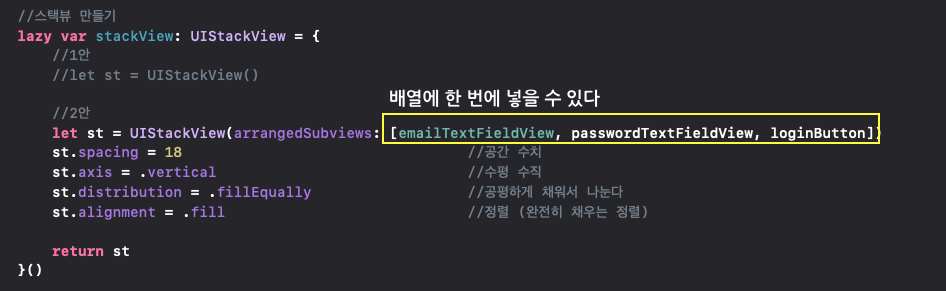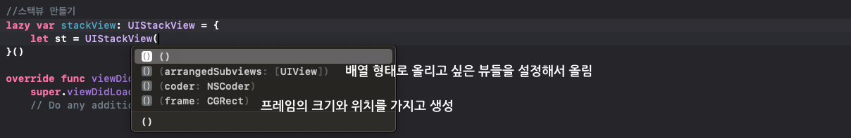 그리고 스택뷰를 만들어줍니다