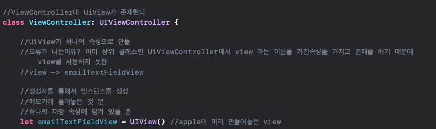 코드로 uiveiw의 객체를 하나 만들고 색깔을 설정하고 레이아웃을 코드로 하나씩 맞춥니다