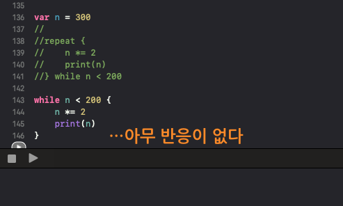 제가 배웠던 언어는 보통 do while문으로 사용했는데 swif에서는 repeat while로