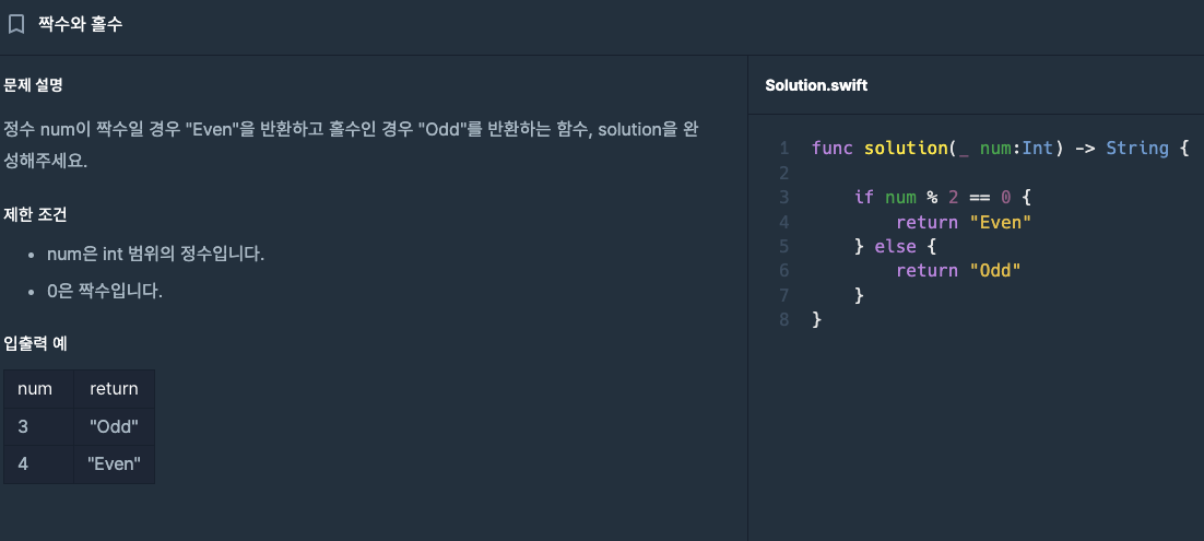 프로그래머스Lv1.문자열을 정수로 바꾸기문제를 풀었습니다 문제 설명문자열 s를 숫자로 변환한 결과를 반환하는 함수, solution을 완성하세요.제한 조건s의 길이는 1 이상 5이하입니다.s의 맨앞에는 부호(+, -)가 올 수 있습니다.s는 부호와 숫자로만 이루어져있습니다.s는 "0"으로 시작하지 않습니다.입출력 예예를들어 str이 "1234"이면 1234를 반환하고, "-1234"이면 -1234를 반환하면 됩니다.str은 부호(+,-)와 숫자로만 구성되어 있고, 잘못된 값이 입력되는 경우는 없습니다. 정답import Foundationfunc solution(_ s:String) -> Int { return Int(s)!} 부호도 앞에 있더라도 Int형으로 바뀌면서 알아서 받아들일거라 생..