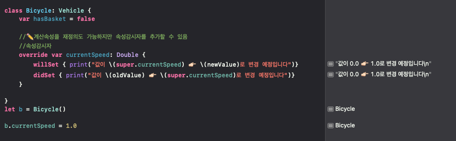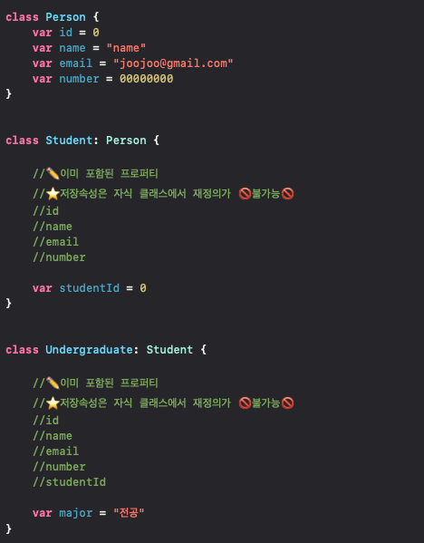 저장속성은 자식 클래스에서 재정의가 불가능!! 하다는점