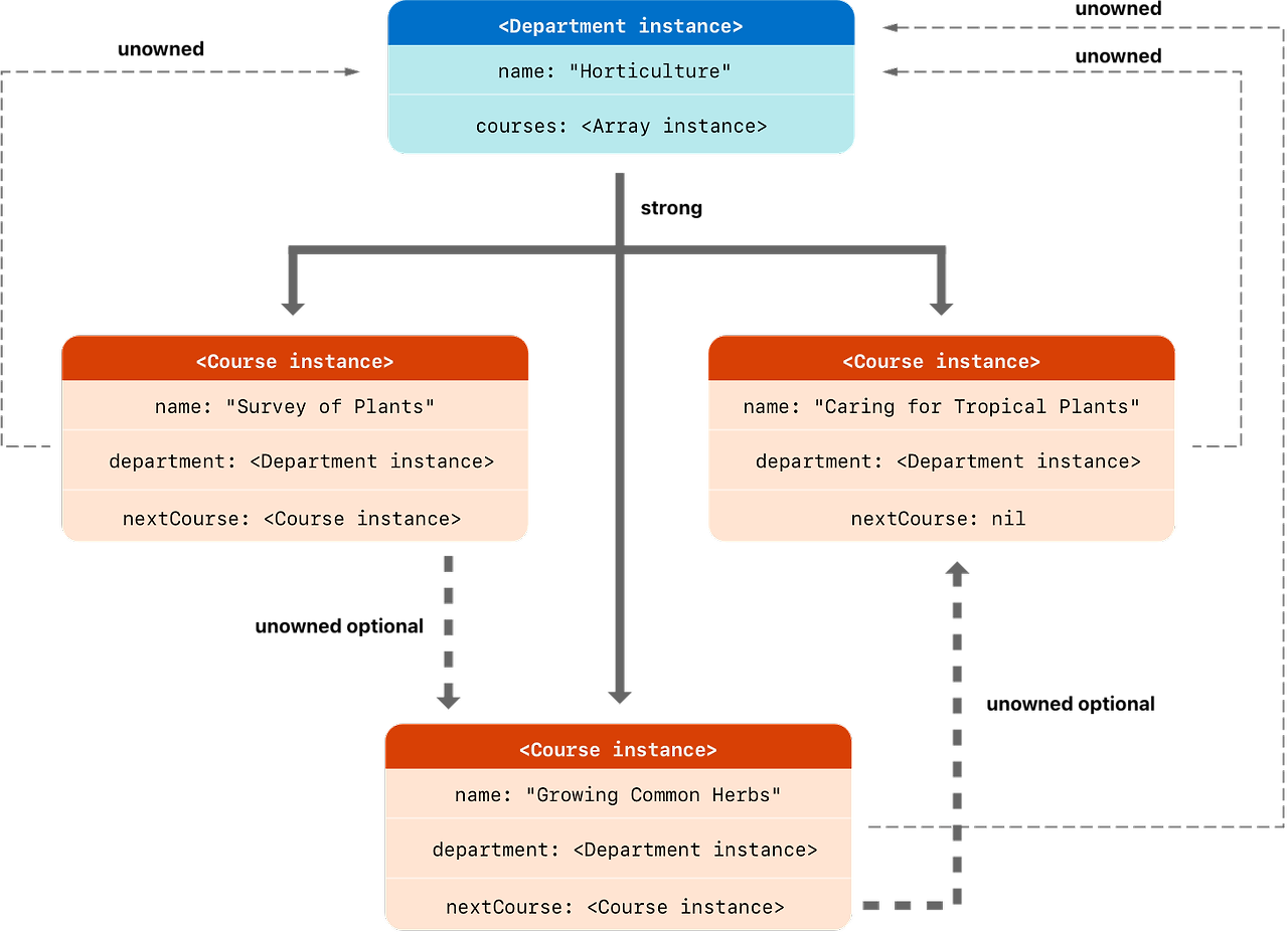 WWDC21에서 다루었던 강한 참조 사이클(Strong Reference Cycle)은 서로를 참조하고 있기에