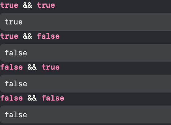 논리 연산자는 비교 연산자처럼 Bool형으로 나타내는 점은 동일하지만
